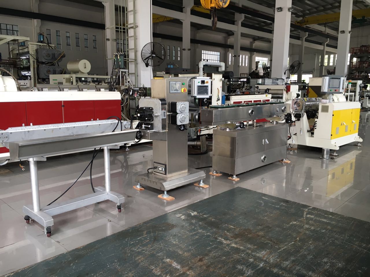 Farklı pafta kafası ve aşağı akış ekipmanı ile donatılan ekipman, boru, profil, kompozit profil, panel, levha ve peletleme vb. üretimi için uygulanabilir. Motor, dişli kutusu, frekans invertörü, kovan ve vidadan oluşan bir mantık kombinasyonu önemli bir rol oynar. enerji verimliliğinin artırılmasında önemli bir noktadır.