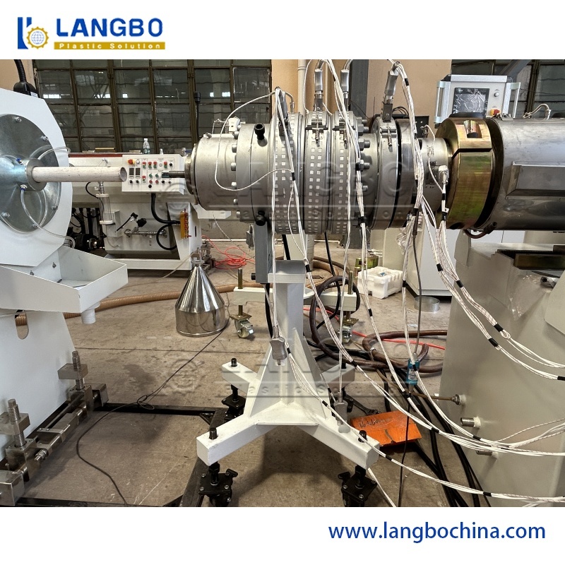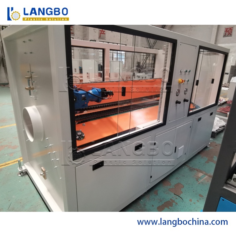 Hammadde + katkı maddesi → Karıştırma → Malzeme taşıma → Zorla besleme → Konik çift vidalı ekstrüder → Ekstrüzyon kalıbı → Çap kontrol ünitesi → Sprey vakum şekillendirme kutusu → Sprey/daldırma tipi soğutma su tankı → Markalama makinesi → Paletli çekici → Kesici → Boru genişletme makinesi → Boru istifleyici → Boru muayenesi ve paketleme