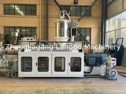 Raw material +master batches → mixing → vacuum feeder→ material dryer → single screw extruder ( small CO-extruder ) → mould → vacuum calibration tank → spray cooling tank ( water tank) → haul-off unit → cutting machine→ stacker