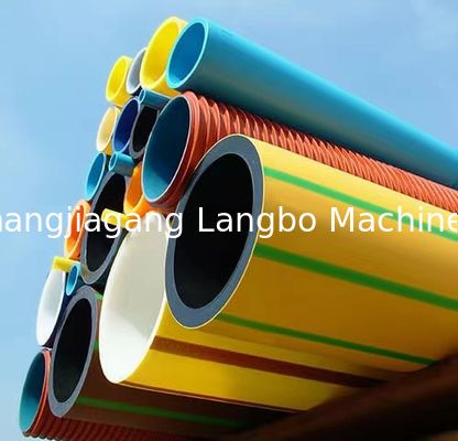 Raw material + master batches→mixing→vacuum feeding →material dryness →single screw extruder→extrusion mould→corrugation forming machine→meter measurer→double winder→finished product inspecting &packing