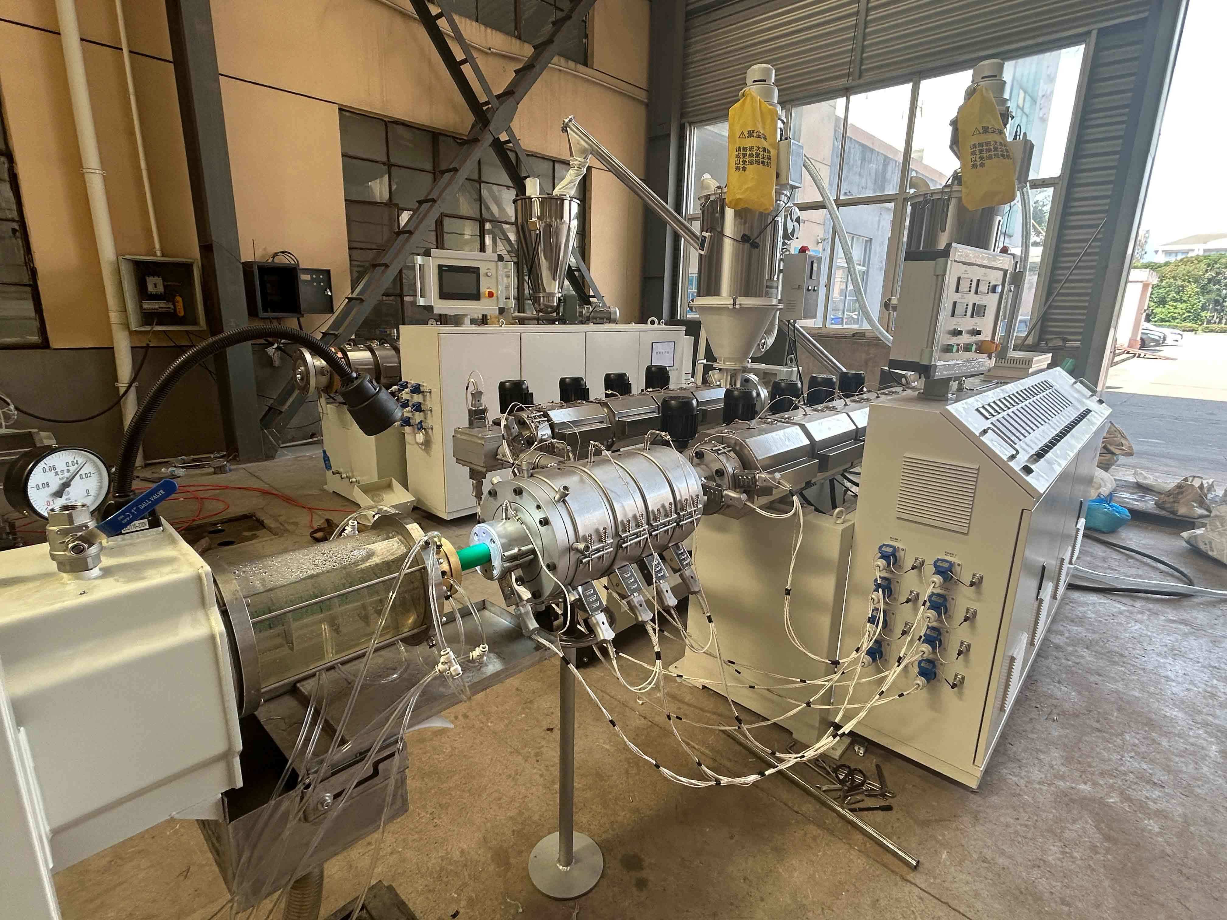 Yükleyici → Kurutucu → Tek vidalı Ekstrüder→ Kalıp→ Vakum & Püskürtmeli Soğutma Tankı → Çekme → Kesici/Sarıcı → Boru istifleyici