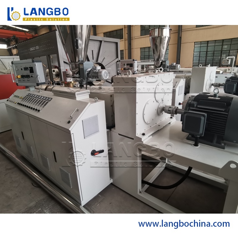 PVC tozu + katkı maddeleri → Karıştırma → Yay besleme → Çift vidalı ekstrüder → Kalıp ve kalibratör → Vakum şekillendirme makinesi → Çekme makinesi → Kesme makinesi → Yükleyici.