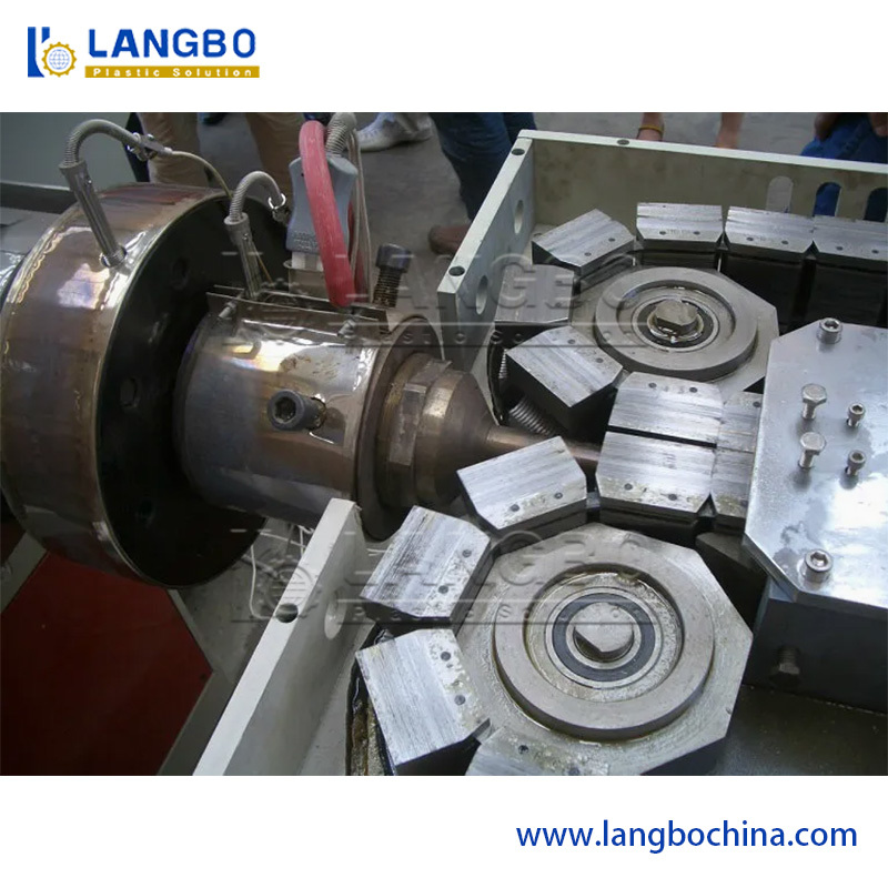 Plastik granüller hazneye beslenir ve ekstrüderde kontrollü sıcaklık ve basınç altında eritilir. Erimiş malzeme daha sonra oluklu kalıpta vakum veya basınçla şekillendirme yoluyla şekillendirilir. Şekillendirmeden sonra, oluklu borular şekillerini stabilize etmek için su ile soğutulur. Soğutulmuş borular otomatik olarak istenen uzunlukta kesilir ve inceleme ve paketleme için sarıcı tarafından toplanır.