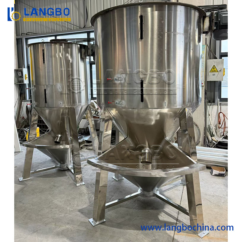 HDPE ve LDPE plastik peletleri ve parçacık malzemeleri için tasarlanmış yüksek verimli dikey karıştırma ve kurutma makinesi, eşit karıştırma ve tutarlı kurutma sonuçlarını sağlar.