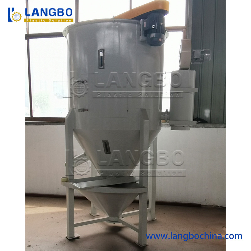 HDPE ve LDPE plastik peletleri ve parçacık malzemeleri için tasarlanmış yüksek verimli dikey karıştırma ve kurutma makinesi, eşit karıştırma ve tutarlı kurutma sonuçlarını sağlar.