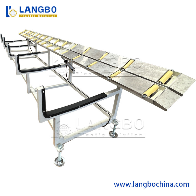 Yükleyici→Konik çift vidalı ekstrüder→Alçak→Vakum oluşturan su tankı→Çöğütme soğutma tankı→Kaldırma makinesi→geri dönüştürülebilir yığıcı